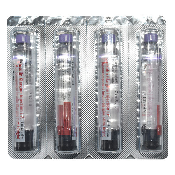 Lantus 100 IU/ml cartridge contains insulin which belongs to a class of Insulins and analogues (synthetic human hormones). It is used in the treatment of diabetes mellitus. It maintains the insulin l