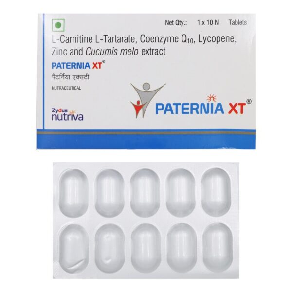 Paternia XT Tablet is a combination of medicines used for treatment of infertility in male. It works by increasing the quantity and motility of sperms. It also replenishes important nutrients in the body.